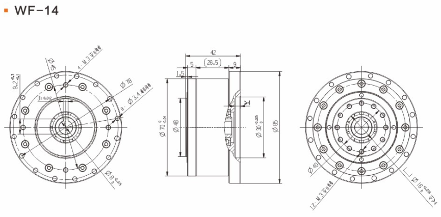 具有傳動(dòng)效率高、工作平穩(wěn)、噪聲低、結(jié)構(gòu)緊湊、重量輕、體積小、使用可靠、壽命長(zhǎng)、減速比范圍大等優(yōu)點(diǎn)。 輕量流線型設(shè)計(jì)、鋼質(zhì)本體、機(jī)型輕薄短小、體積比傳統(tǒng)行星式減速器大幅縮小、可節(jié)省安裝空間。 真圓齒形、齒腹大、抗壓性強(qiáng)、不干涉不崩齒、可承受頻繁正逆轉(zhuǎn)和瞬間急停慣性沖擊。 雙排結(jié)構(gòu)、負(fù)載分散、機(jī)理平衡、圓形齒輪設(shè)計(jì)、磨損小、噪音和溫升要比其他減速器低。 線接觸傳動(dòng)、摩擦系數(shù)小、效率高、出力扭矩大、慣量低、是一種精密的剛性傳動(dòng),剛性傳動(dòng)軌跡也最接近理想工作曲線,這和部分原件使用滾動(dòng)件的擺線式或和諧式傳動(dòng)設(shè)計(jì)有些許不同。 由于雙共軛工作曲線和撓性軸銷(xiāo)輸出裝置的改良設(shè)計(jì)、本機(jī)高精度背隙可控制在弧秒范圍。 長(zhǎng)效性油脂潤(rùn)滑、不需要保養(yǎng)、安裝方向不受限。 人力方式有筒夾緊式和鍵槽式供選用。